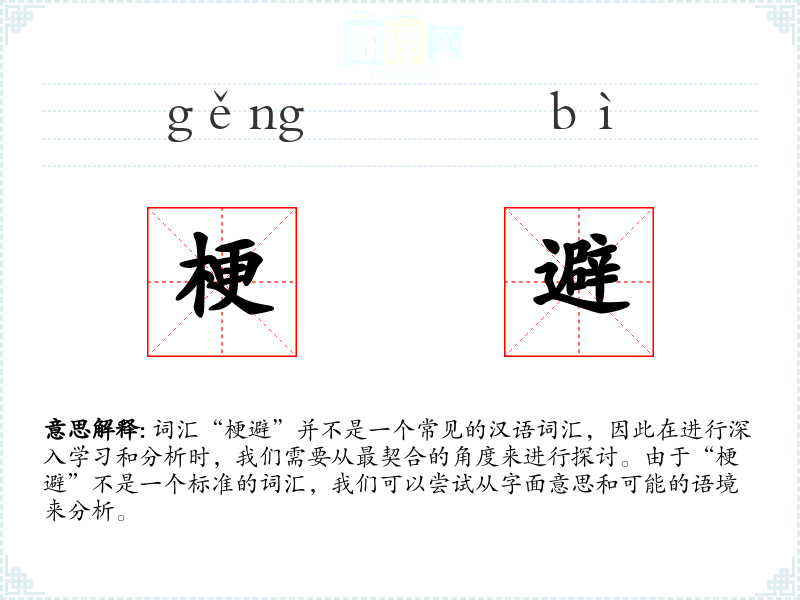 词汇“梗避”并不是一个常见的汉语词汇,因此在进行深入学习和分析时,我们需要从最契合的角度来进行探讨。由于“梗避”不是一个标准的词汇,我们可以尝试从字面意思和可能的语境来分析。
