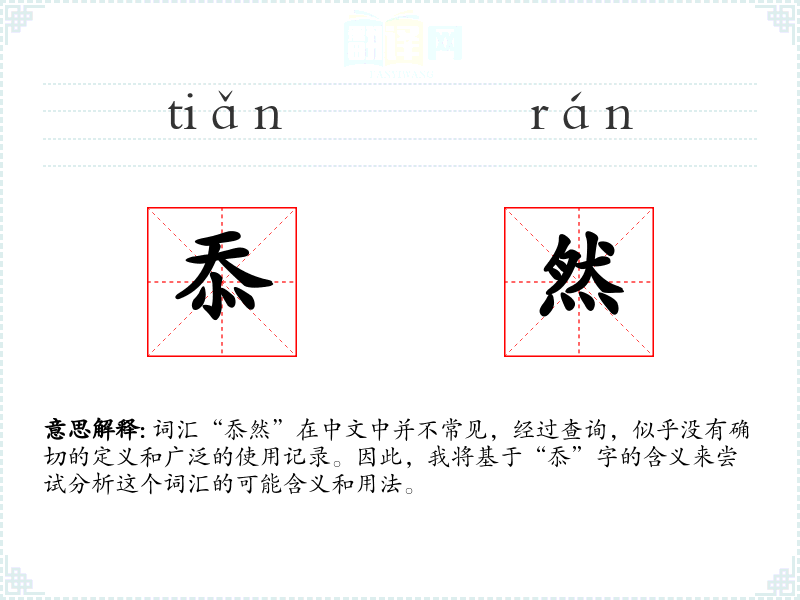 词汇“忝然”在中文中并不常见,经过查询,似乎没有确切的定义和广泛的使用记录。因此,我将基于“忝”字的含义来尝试分析这个词汇的可能含义和用法。