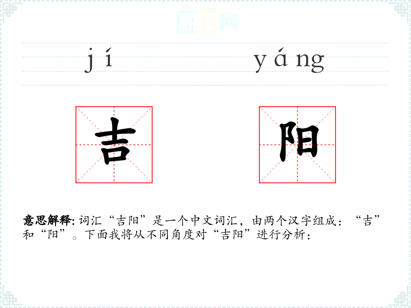 - 词源:“吉”和“阳”都是古代汉语中的常用字,具有悠久的历史。