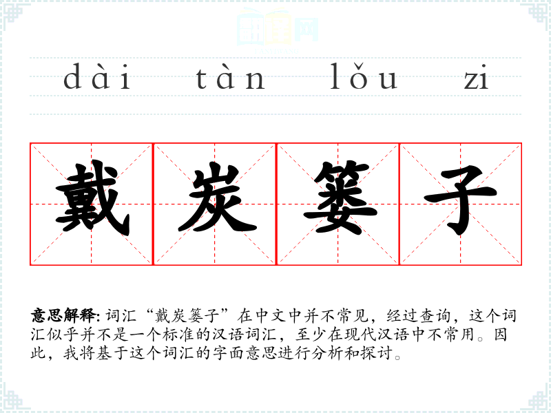 词汇“戴炭篓子”在中文中并不常见,经过查询,这个词汇似乎并不是一个标准的汉语词汇,至少在现代汉语中不常用。因此,我将基于这个词汇的字面意思进行分析和探讨。