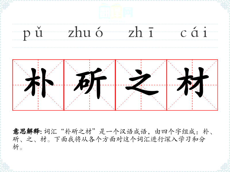 词汇“朴斫之材”是一个汉语成语,由四个字组成:朴、斫、之、材。下面我将从各个方面对这个词汇进行深入学*和分析。