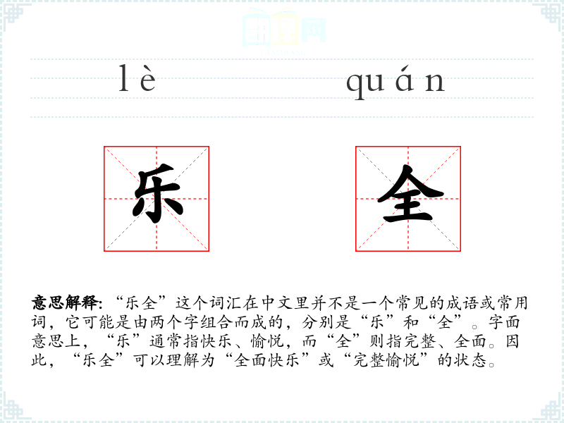 由于“乐全”不是一个常用词汇,它的词源和演变不太明确。可能是由“乐”和“全”两个字组合而成,表达了一种理想化的生活状态。