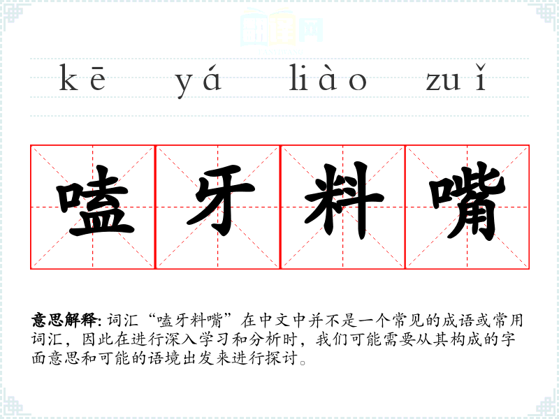 由于“嗑牙料嘴”不是一个常用词汇,它在不同语言或文化中的对应词汇及其使用情况不详。