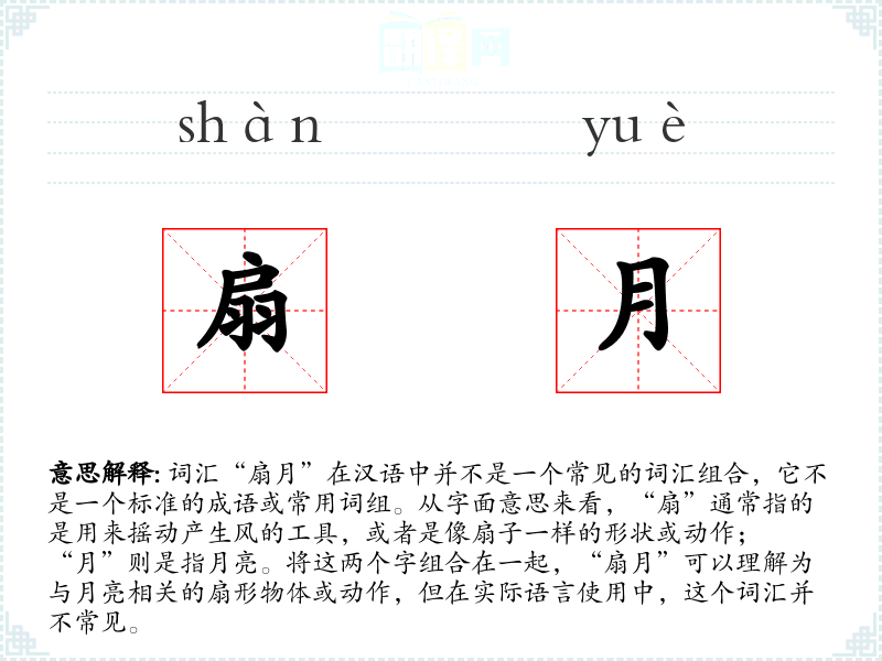 在其他语言中,可能没有直接对应“扇月”的词汇,因为这个词汇在汉语中也不是常用词汇。