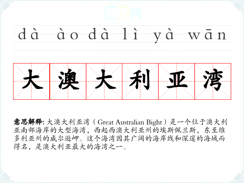 在其他语言中,如中文,大澳大利亚湾可能被直接翻译为“大澳大利亚湾”,保留了原词的意义和地理特征。