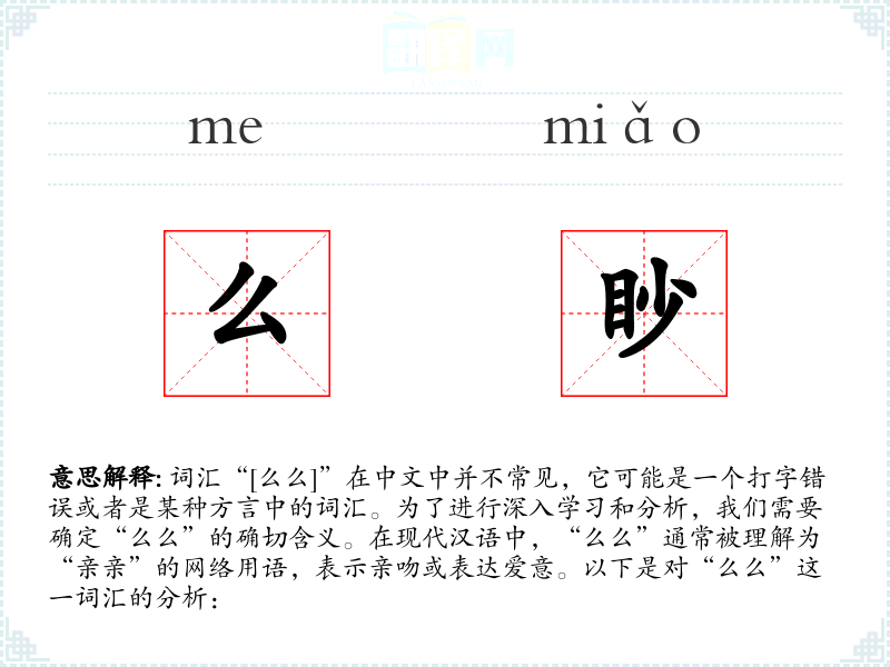 - 词源:“么么”可能是从“亲亲”演变而来,通过网络文化的传播而流行起来。