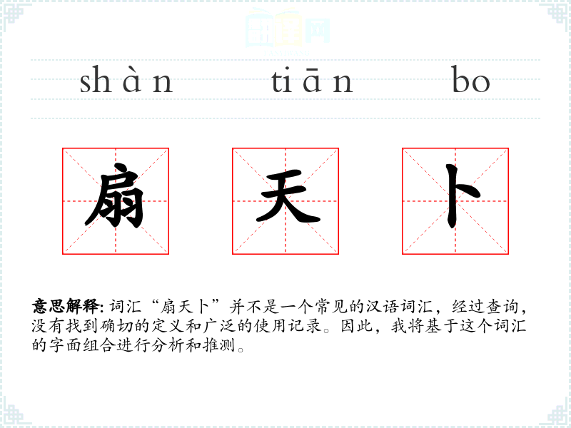 在其他语言或文化中,没有找到与“扇天卜”对应的词汇。