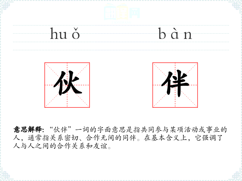 “伙伴”一词的字面意思是指共同参与某项活动或事业的人,通常指关系密切、合作无间的同伴。在基本含义上,它强调了人与人之间的合作关系和友谊。