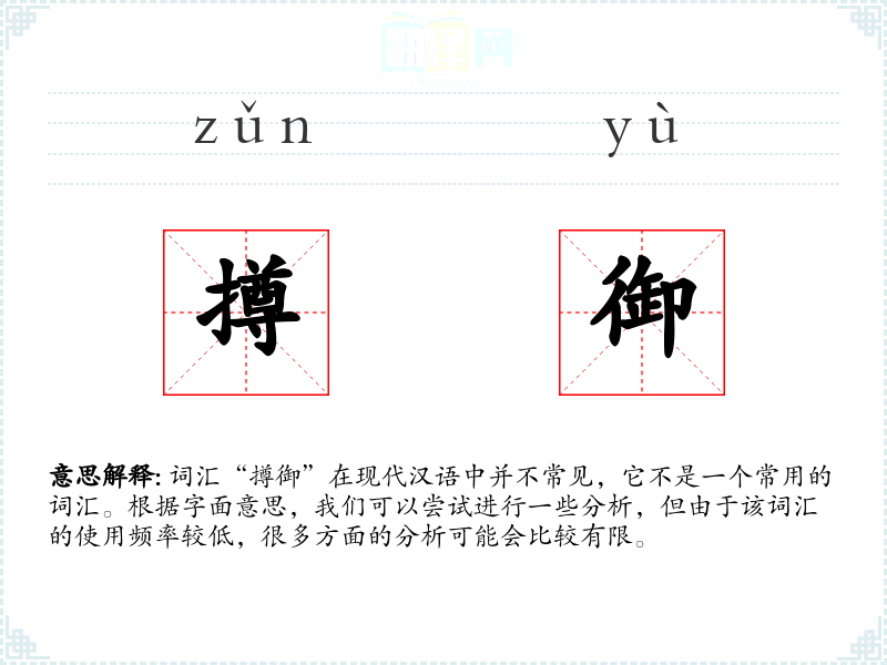 词汇“撙御”在现代汉语中并不常见,它不是一个常用的词汇。根据字面意思,我们可以尝试进行一些分析,但由于该词汇的使用频率较低,很多方面的分析可能会比较有限。