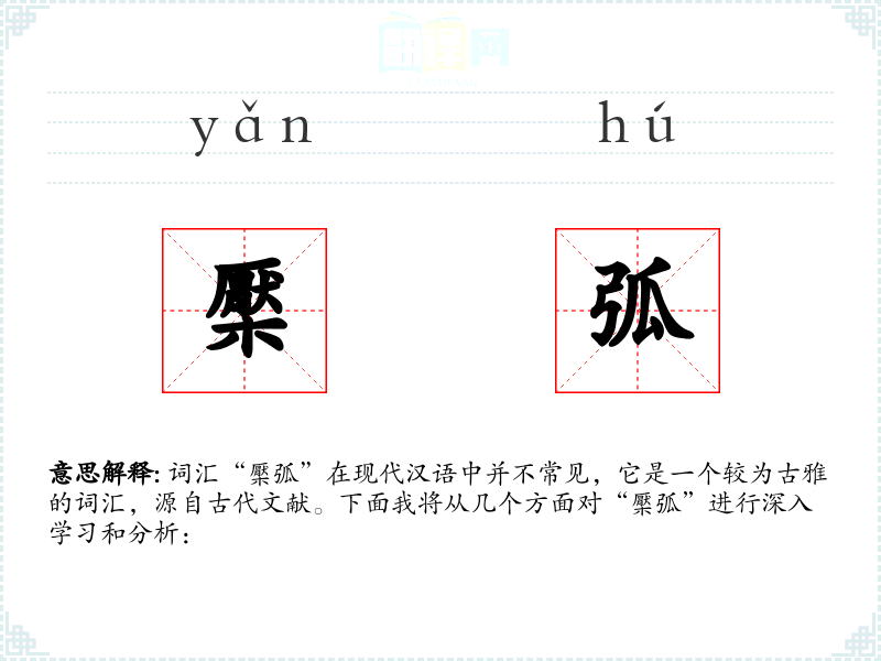 词汇“檿弧”在现代汉语中并不常见,它是一个较为古雅的词汇,源自古代文献。下面我将从几个方面对“檿弧”进行深入学*和分析: