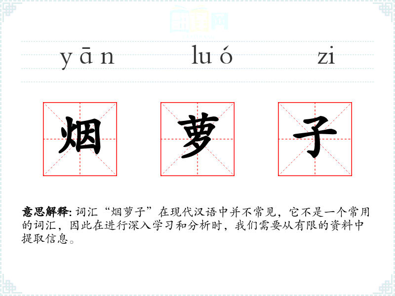 词汇“烟萝子”在现代汉语中并不常见,它不是一个常用的词汇,因此在进行深入学习和分析时,我们需要从有限的资料中提取信息。