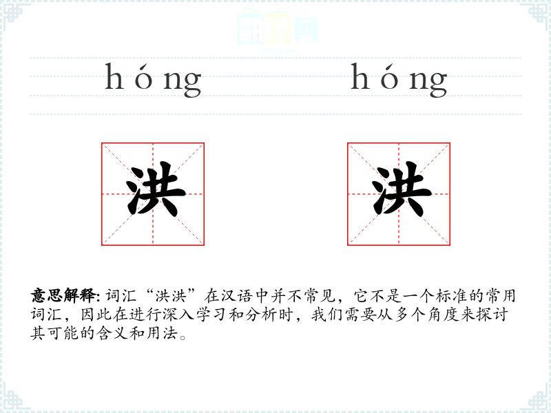 词汇“洪洪”在汉语中并不常见,它不是一个标准的常用词汇,因此在进行深入学*和分析时,我们需要从多个角度来探讨其可能的含义和用法。