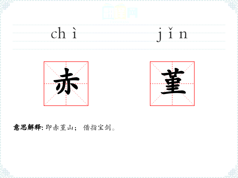 即赤堇山; 借指宝剑。