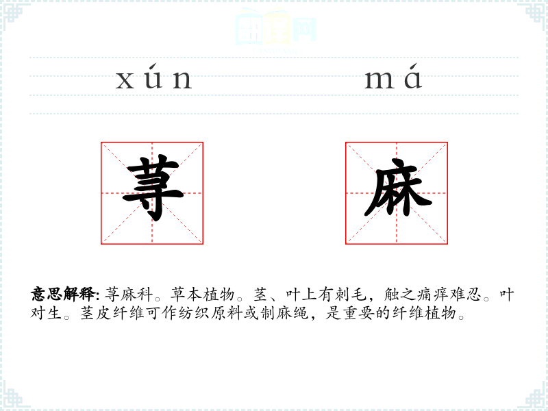 荨麻科。草本植物。茎、叶上有刺毛,触之痛痒难忍。叶对生。茎皮纤维可作纺织原料或制麻绳,是重要的纤维植物。