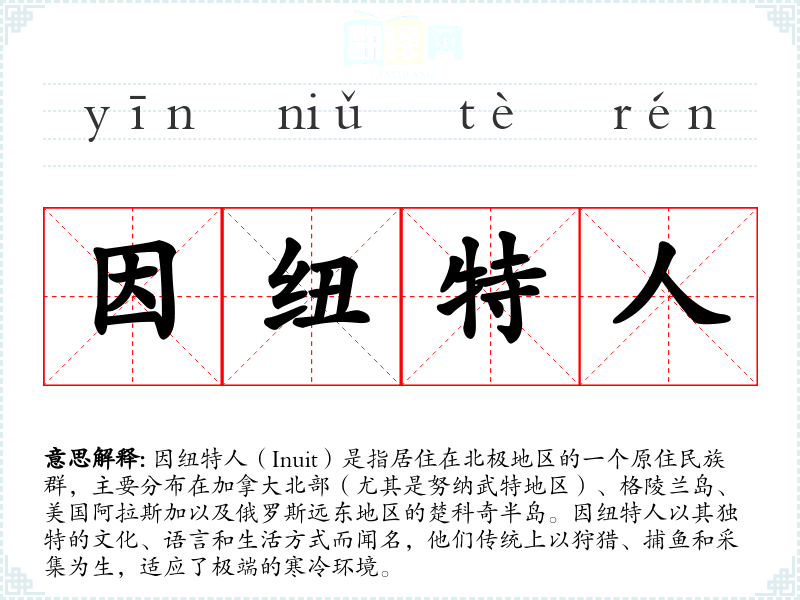 - 反义词:无特定反义词,但可以与“非原住民”或“城市居民”相对比,以突出因纽特人的生活方式和文化特点。