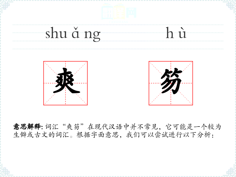 词汇“爽笏”在现代汉语中并不常见,它可能是一个较为生僻或古文的词汇。根据字面意思,我们可以尝试进行以下分析: