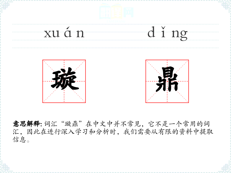 - 反义词:无(由于“璇鼎”不常见,难以找到直接的反义词)