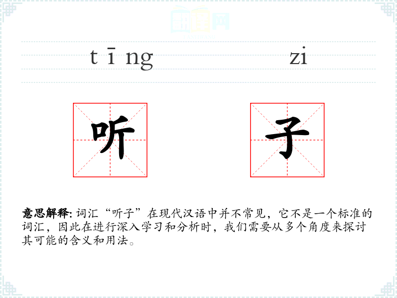 词汇“听子”在现代汉语中并不常见,它不是一个标准的词汇,因此在进行深入学习和分析时,我们需要从多个角度来探讨其可能的含义和用法。