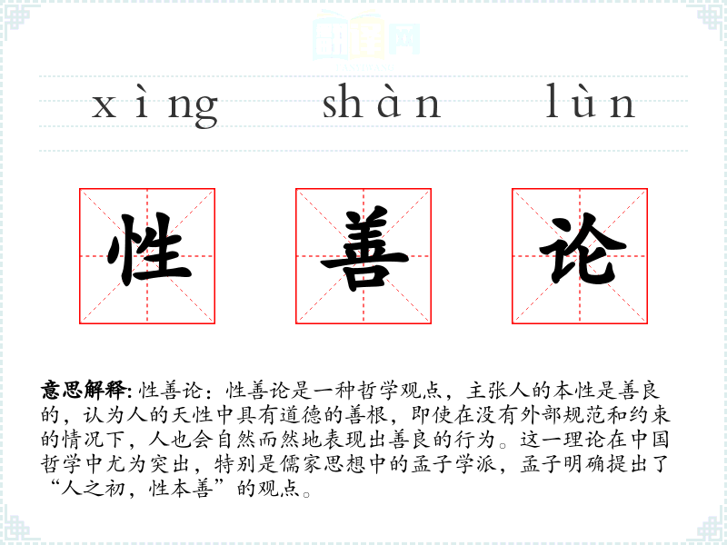 同义词:人性本善、善良本性 反义词:性恶论、人性本恶