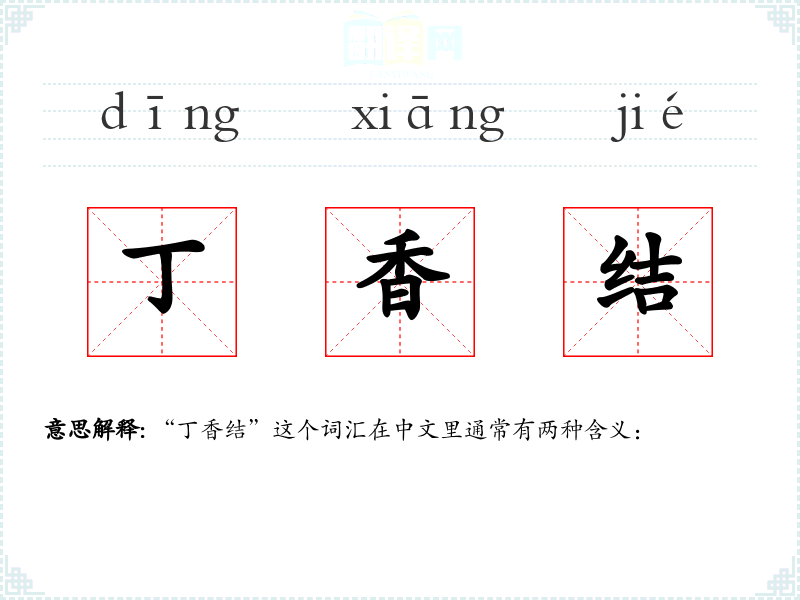 - 文学语境:在诗歌或散文中,“丁香结”常用来形容忧郁、沉思或难以解决的问题。