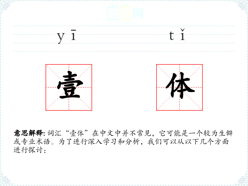 词汇“壹体”在中文中并不常见,它可能是一个较为生僻或专业术语。为了进行深入学习和分析,我们可以从以下几个方面进行探讨: