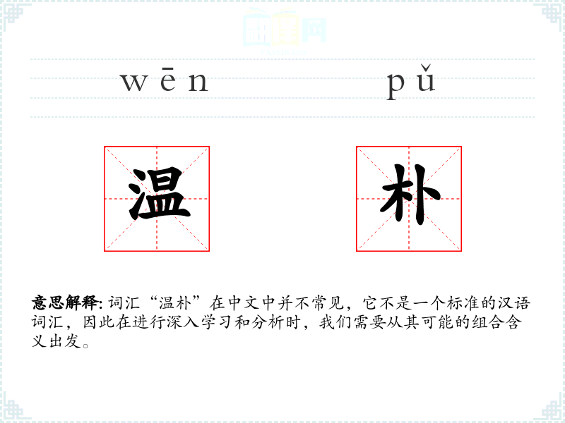 词汇“温朴”在中文中并不常见,它不是一个标准的汉语词汇,因此在进行深入学*和分析时,我们需要从其可能的组合含义出发。