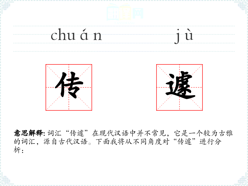 词汇“传遽”在现代汉语中并不常见,它是一个较为古雅的词汇,源自古代汉语。下面我将从不同角度对“传遽”进行分析: