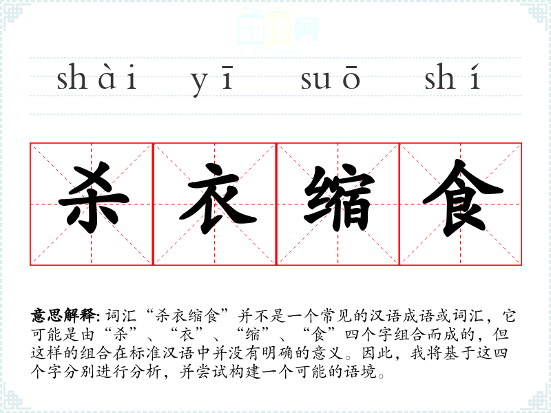 虽然“杀衣缩食”不是一个标准词汇,但通过对这四个字的分析,我们可以理解它在特定语境下的可能意义。在语言学习和表达中,理解词汇的多样性和灵活性是非常重要的。