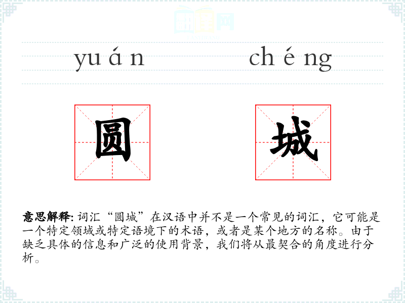 词汇“圆城”在汉语中并不是一个常见的词汇,它可能是一个特定领域或特定语境下的术语,或者是某个地方的名称。由于缺乏具体的信息和广泛的使用背景,我们将从最契合的角度进行分析。