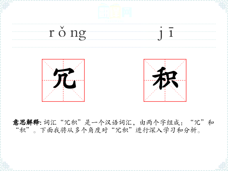 词汇“冗积”是一个汉语词汇,由两个字组成:“冗”和“积”。下面我将从多个角度对“冗积”进行深入学习和分析。