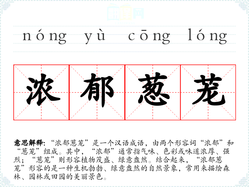 “浓郁”和“葱茏”都是汉语中的传统词汇,历史悠久。在古代文学中,这两个词就已经被用来形容自然景色。随着时间的推移,它们的用法和含义基本保持不变,但在现代汉语中,“浓郁葱茏”更多地被用作一个整体成语来描述自然美景。