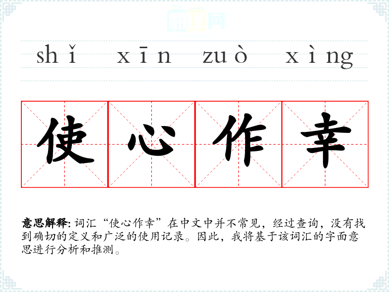 词汇“使心作幸”在中文中并不常见,经过查询,没有找到确切的定义和广泛的使用记录。因此,我将基于该词汇的字面意思进行分析和推测。