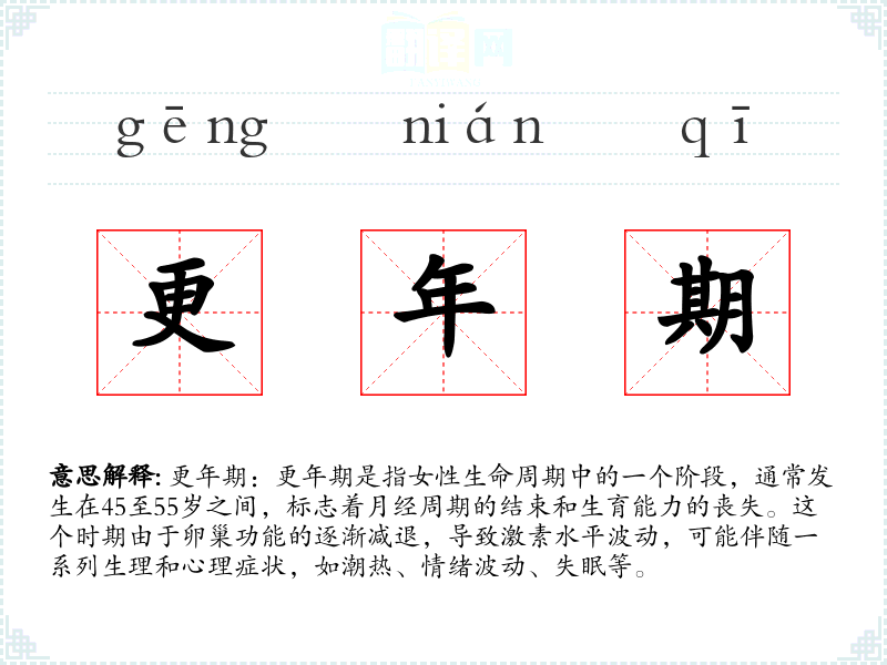 "更年期"的意思解释、更年期是什么意思由翻译网汉语词典查词提供。