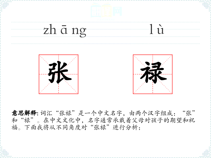 - 在**文化中,名字往往与吉祥、美好的愿望相关联。因此,“张禄”可能反映了父母希望孩子未来能够拥有稳定的工作和良好的生活。