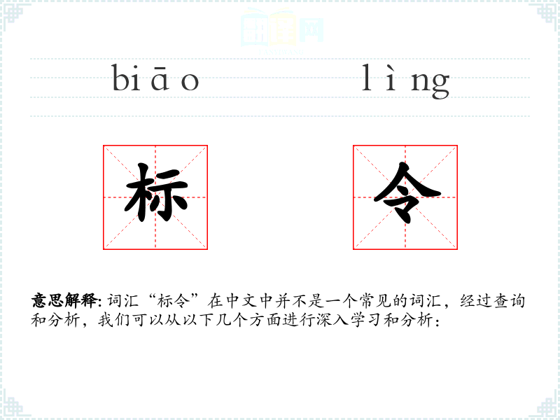 词汇“标令”在中文中并不是一个常见的词汇,经过查询和分析,我们可以从以下几个方面进行深入学*和分析: