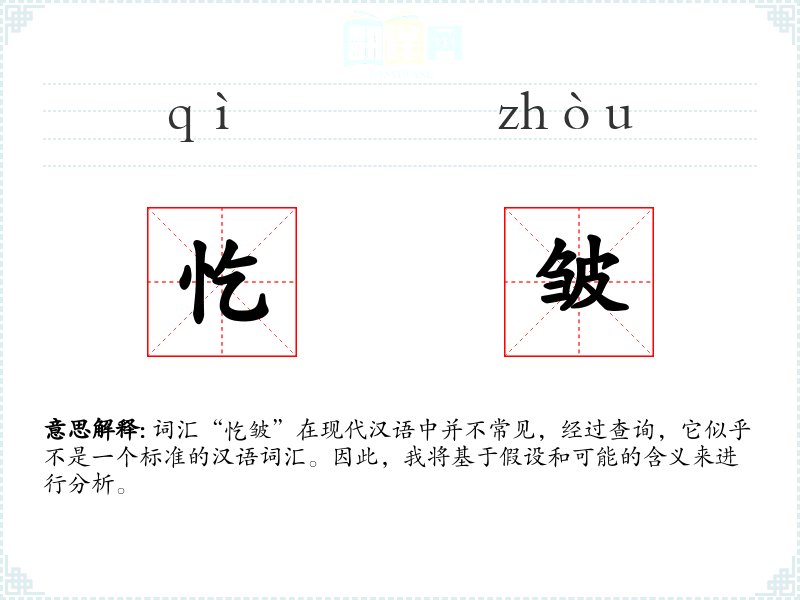 词汇“忔皱”在现代汉语中并不常见,经过查询,它似乎不是一个标准的汉语词汇。因此,我将基于假设和可能的含义来进行分析。