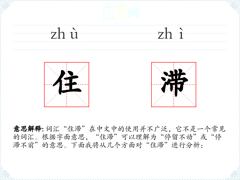 词汇“住滞”在中文中的使用并不广泛,它不是一个常见的词汇。根据字面意思,“住滞”可以理解为“停留不动”或“停滞不前”的意思。下面我将从几个方面对“住滞”进行分析: