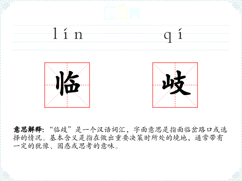 “临歧”一词源自古代汉语,其中“临”意为面临,“歧”意为岔路。在古代文献中,这个词常用来形容人在关键时刻的选择。随着时间的推移,其含义逐渐扩展,不仅限于字面上的岔路口,而是泛指各种需要做出选择的情境。