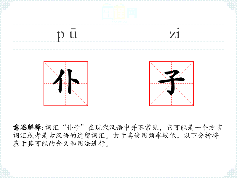 词汇“仆子”在现代汉语中并不常见,它可能是一个方言词汇或者是古汉语的遗留词汇。由于其使用频率较低,以下分析将基于其可能的含义和用法进行。