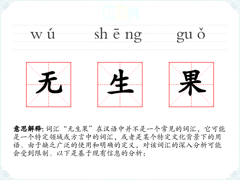 - 由于“无生果”不是一个常见的词汇,其词源和演变可能不明确,可能是一个现代创造的词汇或者是某个特定社群的内部用语。