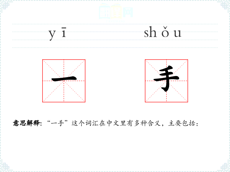 "一手"的意思解释、一手是什么意思由翻译网汉语词典查词提供。