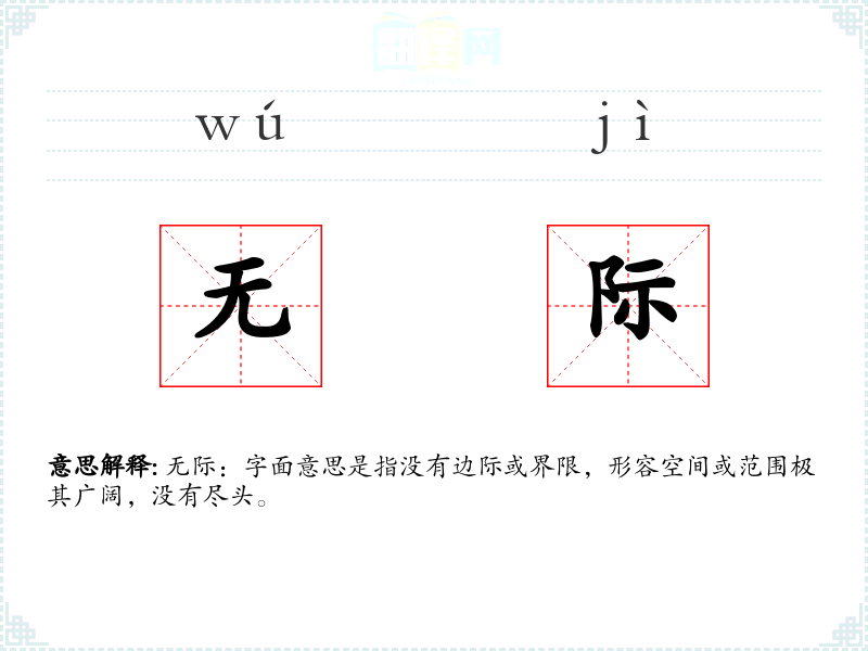 无际:字面意思是指没有边际或界限,形容空间或范围极其广阔,没有尽头。