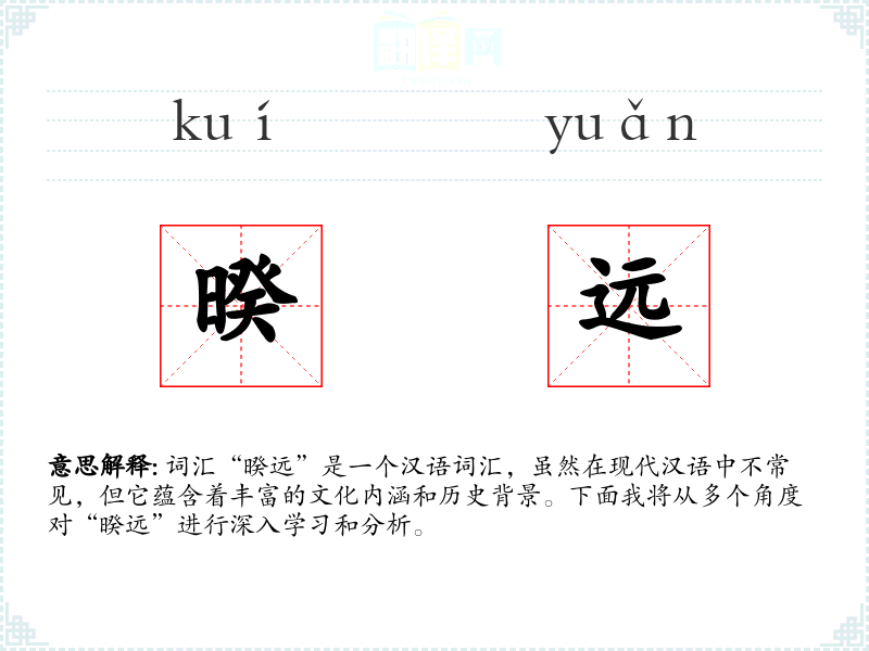 词汇“暌远”是一个汉语词汇,虽然在现代汉语中不常见,但它蕴含着丰富的文化内涵和历史背景。下面我将从多个角度对“暌远”进行深入学*和分析。