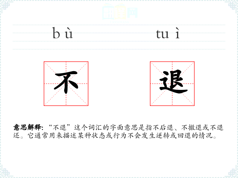 "不退"的意思解释、不退是什么意思由翻译网汉语词典查词提供。