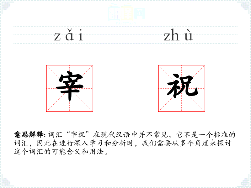 词汇“宰祝”在现代汉语中并不常见,它不是一个标准的词汇,因此在进行深入学*和分析时,我们需要从多个角度来探讨这个词汇的可能含义和用法。