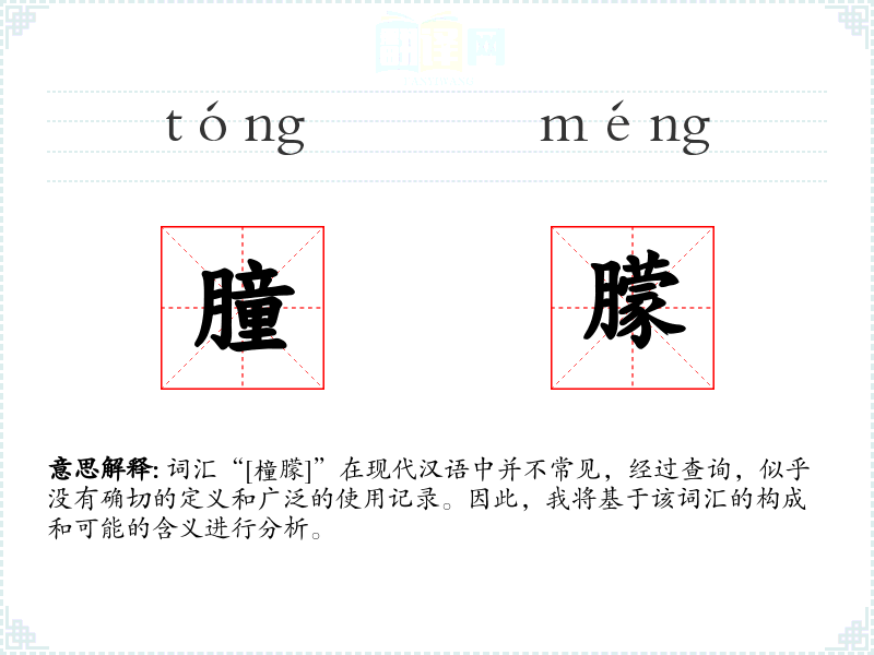 由于“橦朦”不是一个标准的汉语词汇,我们可以尝试从字面上解读: