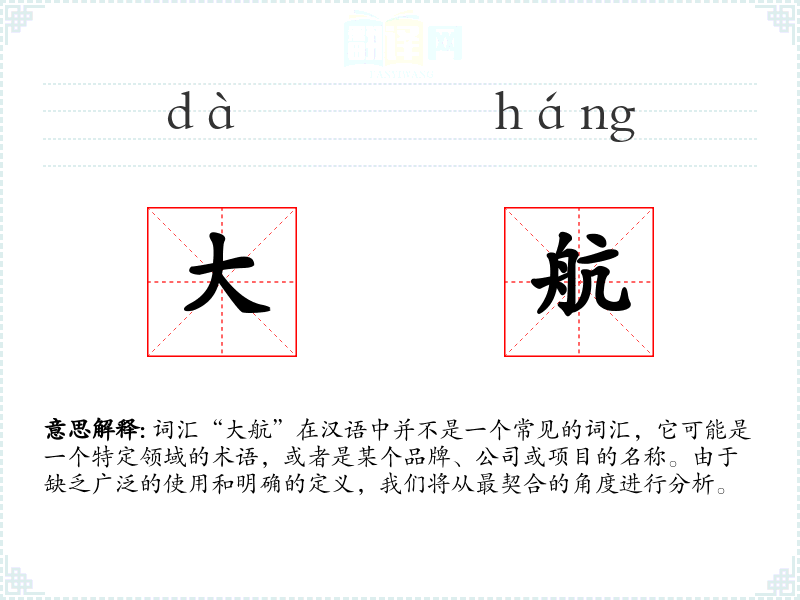 词汇“大航”在汉语中并不是一个常见的词汇,它可能是一个特定领域的术语,或者是某个品牌、公司或项目的名称。由于缺乏广泛的使用和明确的定义,我们将从最契合的角度进行分析。