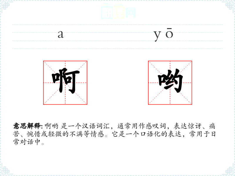 - 同义词:哎呀、哎哟、哎呦、哎