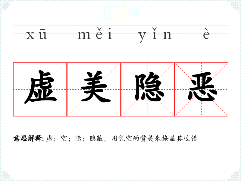 虚:空;隐:隐蔽。用凭空的赞美来掩盖其过错