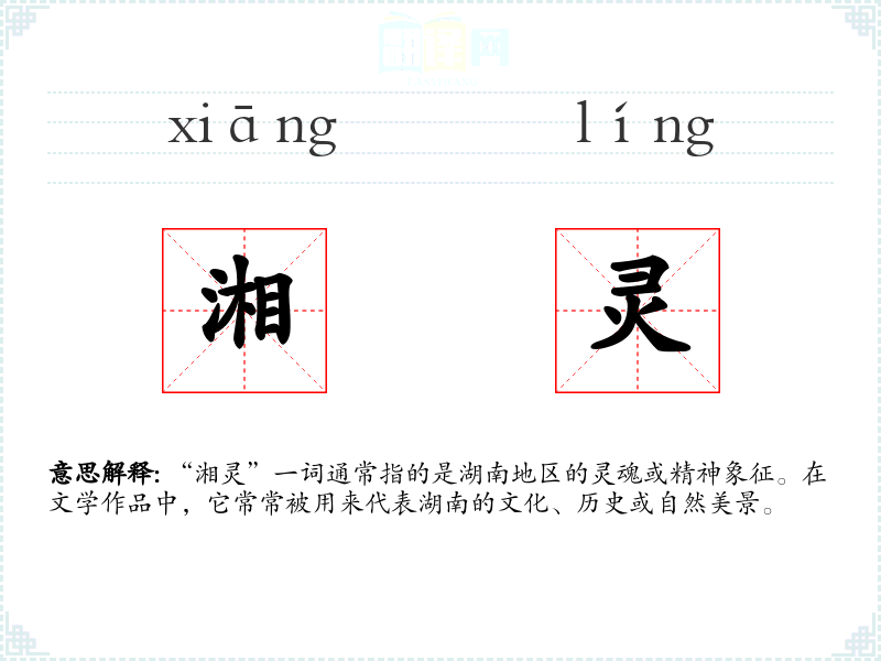 - 文学语境:在文学作品中,“湘灵”可能被用来描绘湖南的山水之美,或是表达对湖南文化的敬仰。